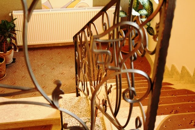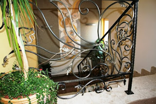 Astfel s-a conturat o balustrada din fier forjat cu elemente florale ce par sa prinda viata intr un interior incalzit de culoare.