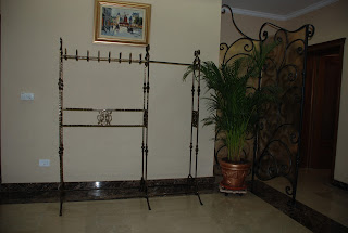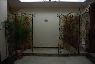 Fier forjat detalii paravane Fier forjat se gaseste si in cele doua paravane construite din aceleasi linii ondulate ,ce amintesc de liniile domoale ale plantelor ,ale florilor ,te intampina intr-un mod placut, mascand niste usi.
